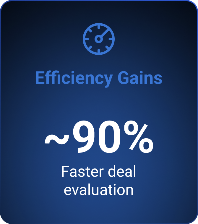 We focus on what remains. Our solution, Pytheas.AI, turns all those overlooked deals into scalable opportunity. Able to evaluate a deal 90% faster, our tech kills bad deals early and helps us scale what